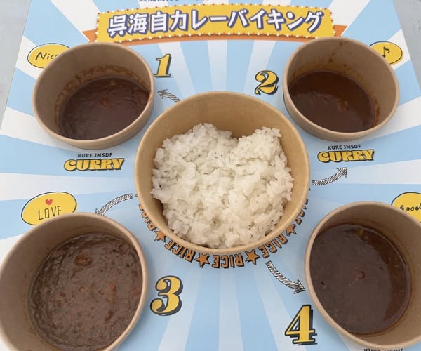 活動報告 2025年10月13日 呉グルメフェスタ2025 今日は #呉海自カレー ・呉グルメフェスタ2025 が海上自衛隊呉基地係船堀地区で開催されました! 基地の隊員に提供されているメニューをベースにした大人気「呉海自カレー」4種類の食べ比べを堪能さらに呉産のかきや細うどんなど地元グルメも大集合。 艦艇の一般公開もされ、会場には多くの来場者が!呉の魅力がギュッと詰まったイベントでした。