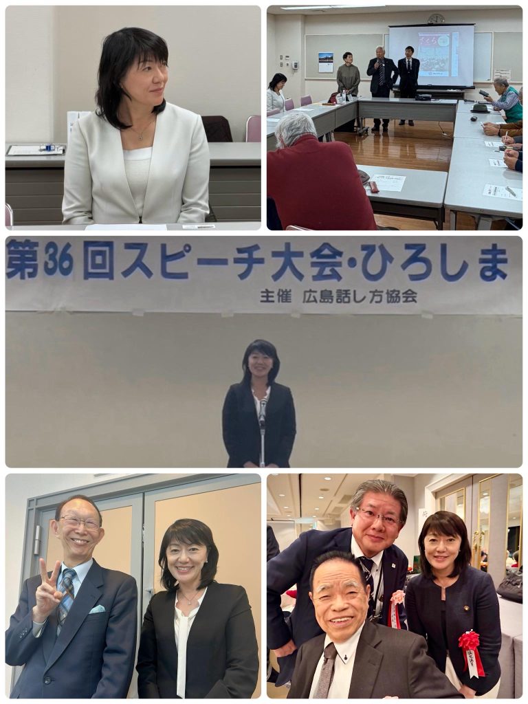 活動報告 2025年11月30日 地域でがんばる人を応援しています! ○地元廿日市市議による市政報告会に参加。少子高齢化、太陽光パネル、交通渋滞、議会運営の報告など身近な課題について住民の皆さんと率直な意見交換ができました。 ○広島愛媛県人会総会・懇親会に出席。愛媛ゆかりの方々と広島と四国をつなぐ絆を感じる貴重な機会になりました。 ○広島話し方協会主催のスピーチ大会へ。参加者の皆さまが日頃の練習の成果を発揮!「伝える力」の大切さを改めて学ばせていただきました。