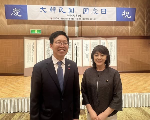 活動報告 2025年10月03日 大韓民国国慶日レセプションに出席 駐広島大韓民国総領事館主催「#大韓民国国慶日 レセプション」に出席。日韓両国は、経済・文化・教育など幅広い分野で交流を重ねてきました。 現在、中四国地方で唯一の広島〜清州(チョンジュ)線が10月25日まで期間限定で就航。利用状況によりその後の運航を決定するということで、地域間交流にも力が入ります。 今年は日韓国交正常化60年の節目の年。 これからも両国の友好関係が深まるよう努めてまいります。