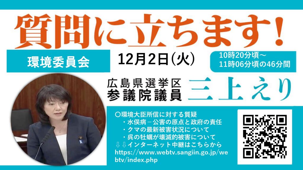 本日、10時20分頃から11時6分頃までの約46分間、#環境委員会 で質疑を行います。