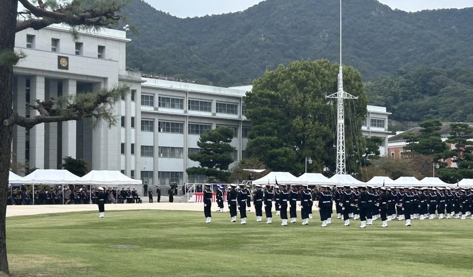会場は広島県江田島市の #海上自衛隊第一術科学校 。観閲式や音楽隊の演奏が厳かに行われ、隊員の皆さまの姿に敬意と感謝の意を表しました。第一術科学校のグラウンドでは多彩な催しも行われ、ご家族の皆さまとも交流させていただき貴重なお話を伺うことができました。