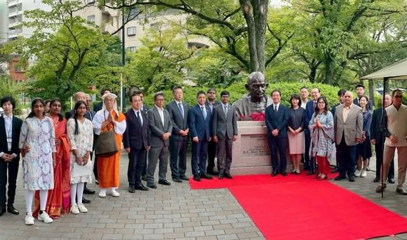 広島市平和公園近く、元安川東岸のマハトマ・ガンジー 胸像前で行われた #ガン...